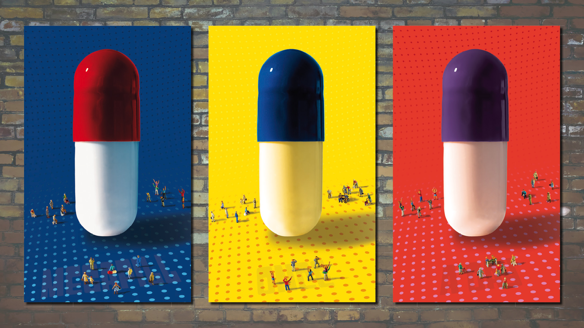 Faszinierend sind die Szenarien: Tablettenverpackungen werden zu Häusern und ganzen Städten verwandelt, in denen kleine Figuren aus dem Modellbau sehr lebendig herumzugehen scheinen und sie mit Leben füllen, Spritzen mutieren zu Laternen, geknautsche Blisterverpackungen erstarren zu Nebel, OP-Masken formen Wellen für Surfer, Schwimmer und Wasserratten, verschiedenfarbige Tabletten formen einen Garten.